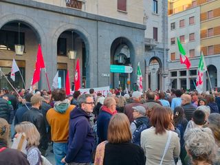 Presente in piazza Monte Grappa anche il sindaco Galimberti che ha detto come questa «è l'opportunità per riaffermare i valori della Costituzione davanti a determinati episodi preoccupanti per la tenuta democratica».