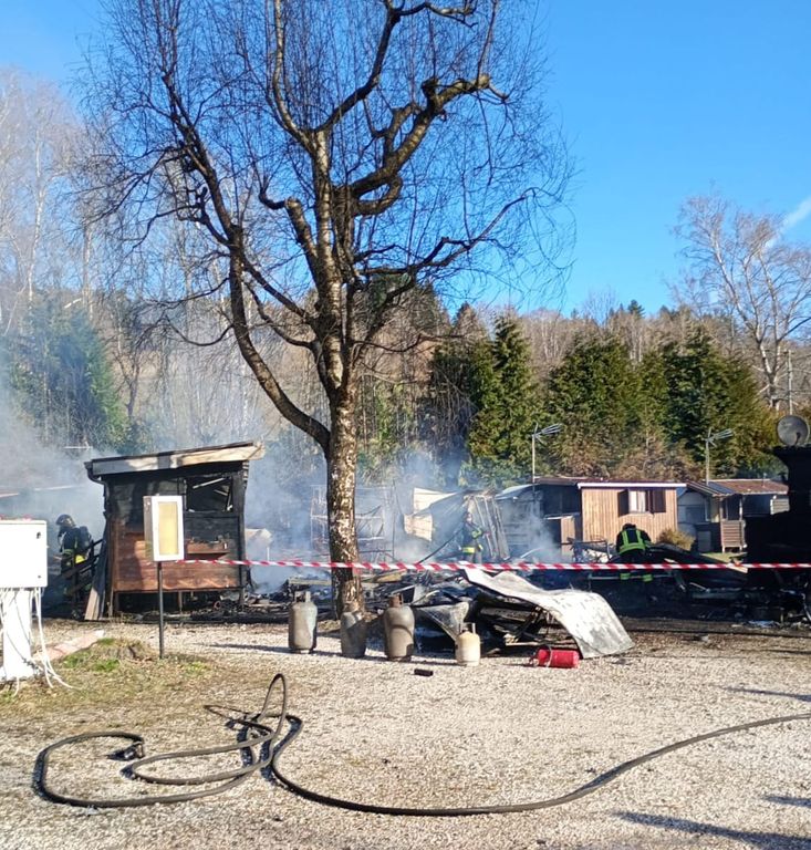Fortunatamente solo un grande spavento, ma lo scoppio delle bombole ha fatto davvero paura. Erano le 7.45 di domenica mattina quando Cristina Madau e il marito sono stati svegliati all'interno della propria casetta che sorge all'interno del camping “7 camini” di Gignese. L'incendio (LEGGI QUI) aveva da poco iniziato a divampare, tra roulotte e bungalow della struttura di villeggiatura sopra l'Alpino, in direzione Mottarone.