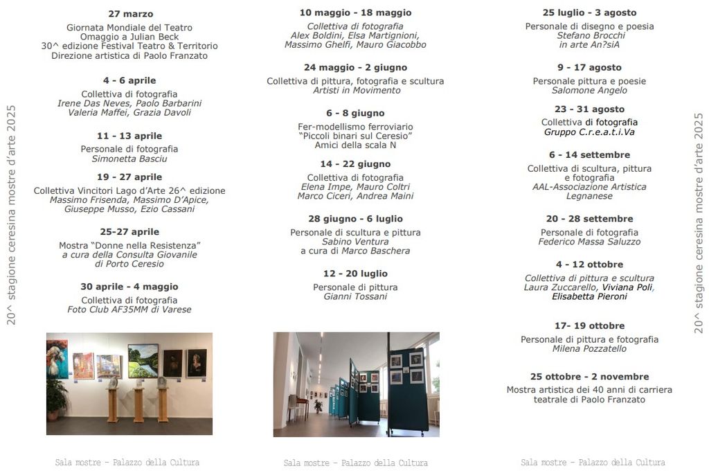Qui sotto il volantino con il programma completo delle mostre in programma.