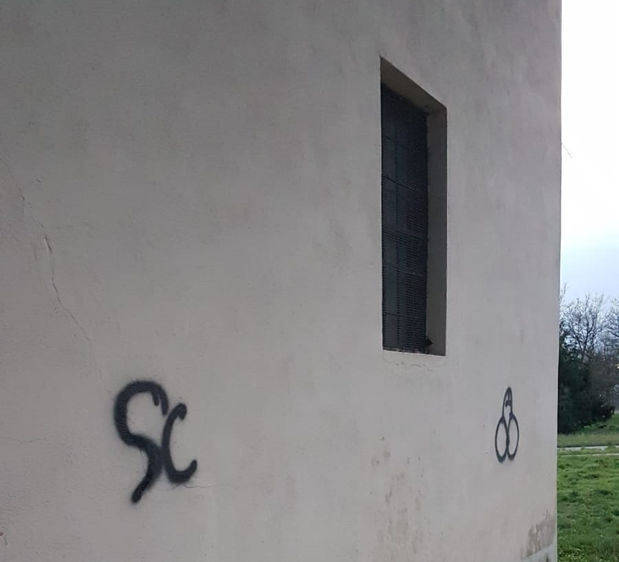 Scarabocchi e simboli fallici. Nelle scorse ore, la chiesa di Madonna in Campagna è stata oltraggiata con delle scritte tracciate con uno spray nero.