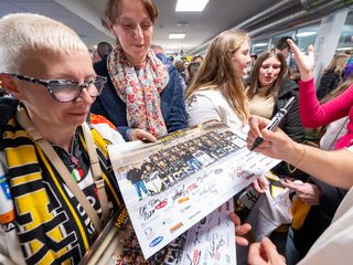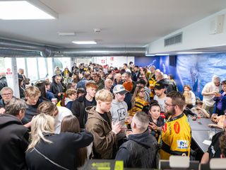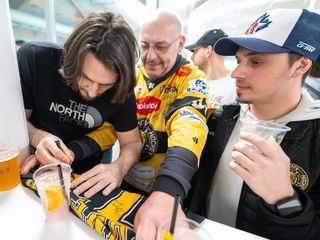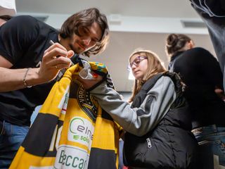 Una serata bellissima e molto emozionante. Bellissima perché solo a Varese centinaia di persone possono ritrovarsi una sera di inizio primavera come e più che a una partita "solo" per un saluto e per dire grazie. Solo qui grandi e piccoli riempiono per ore il bar del palaghiaccio con sciarpe, magliette e qualunque indumento giallonero per chiedere un autografo ai giocatori, a tutti i giocatori, da capitan Vanetti a Raskin, da Pietro Borghi a Makinen e Kuronen, e per sommergere nell'abbraccio più commovente del mondo il numero 91 Edoardo Raimondi, cha ha detto stop alla sua carriera da vero Mastino. Accompagnato dalla famiglia e dalle persone più care della sua vita, Edo è riuscito solo a notte a emergere da un arrivederci collettivo che nella storia giallonera non ha eguali. Ultima serata da Mastino anche per il portiere Artur Ohandzhanian, che è tornato al Kiruna IF, squadra svedese di terza serie con cui Oggy aveva già militato. "Fino all’ultimo ci avete onorato, grazie per non aver mollato" ha scritto in un gigantesco striscione la curva nord. Mai parole furono più vere e meritate.