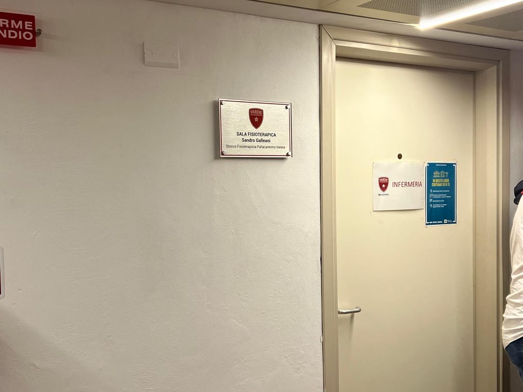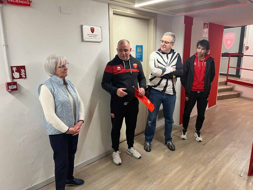 Un’idea - lo avevamo spiegato QUI - partorita dal BSN, accudita da Pallacanestro Varese e apprezzata dalla famiglia di Sandro, oggi presente nella sala Irca dell’Itelyum Arena a “benedire” l’investitura formale. La cara signora Egidia e il figlio Claudio, però, non hanno “salutato” solo questo primo ricordo, ma hanno avuto anche la sorpresa di assistere anche a un altro significativo riconoscimento, stavolta tutto made in Pallacanestro Varese: da un’idea di Marco Gandini, capo ufficio stampa della società biancorossa, anche l’infermeria/sala fisioterapica del Lino Oldrini è stata dedicata a Sandro, per il tramite di una targa svelata subito dopo la conferenza stampa relativa al “Memorial”.