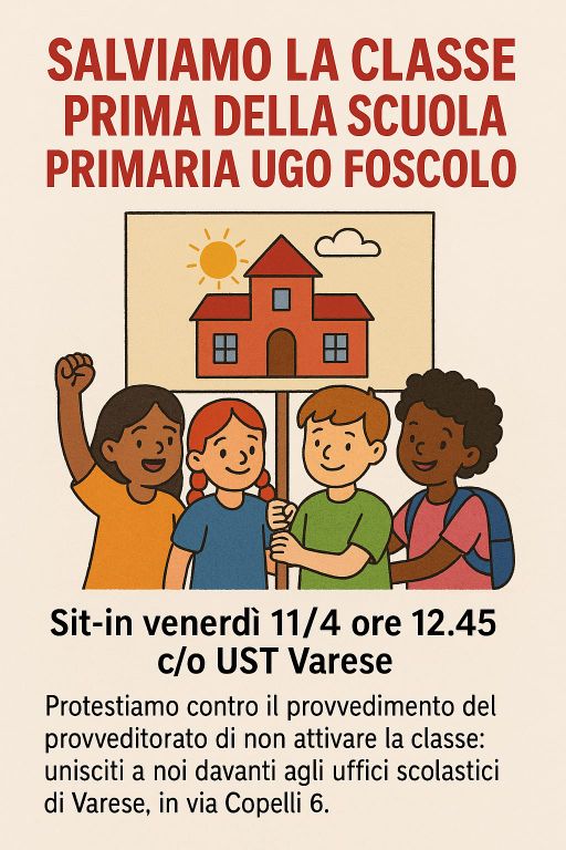 Salvare la classe prima della scuola Ugo Foscolo di Varese: questo l'obiettivo del sit in che avverrà venerdì 11 aprile presso l'ufficio scolastico territoriale, in via Copelli, alle ore 12.45.