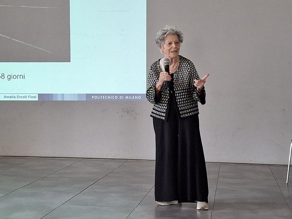 Piglio deciso, parlantina sciolta, sorriso sulle labbra, un solo sorso d’acqua durante un discorso fatto rigorosamente in piedi, Amalia Ercoli Finzi si è infine rivolta in modo diretto a studenti e studentesse: «Quando gli americani, che fino a un certo punto erano stati sempre secondi, superati dai russi, andarono sulla luna lo fecero, dissero, perché è nelle cose difficili che dimostriamo il nostro valore. Vale anche per voi, nelle decisioni che prendete, negli studi che scegliete (…) Il mestiere che ho fatto è bellissimo anche se toglie il sonno. A voi dico: avete il futuro nelle vostre mani. Si parla male dei giovani? I giovani hanno preso dai genitori, sono stati formati nelle loro famiglie, vivono in una società piena di difetti. Potete fare meglio di quello che avete trovato, fatelo. Ciascuno di voi ha una caratteristica eccezionale, che solo lui possiede, dovete fare fruttare il vostro talento. Sarete giudicati per questo».