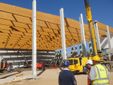 Nelle scorse settimane, con un trasporto eccezionale nelle ore notturne, sono arrivate le maxi travi in legno per la copertura del palazzetto di Beata Giuliana.
