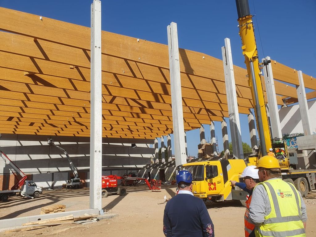 Nelle scorse settimane, con un trasporto eccezionale nelle ore notturne, sono arrivate le maxi travi in legno per la copertura del palazzetto di Beata Giuliana.