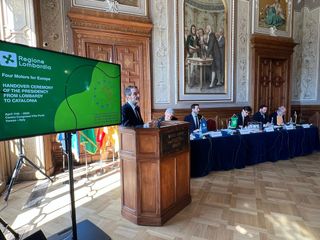 La giornata si è conclusa con il simbolico passaggio del testimone tra Attilio Fontana e Salvador Illa, rappresentante della Generalitat de Catalunya, alla presenza dei delegati di Baden-Württemberg e Alvernia-Rodano-Alpi. Un gesto semplice, ma carico di significato: la cooperazione tra Regioni è oggi una delle risposte più forti alle sfide globali.