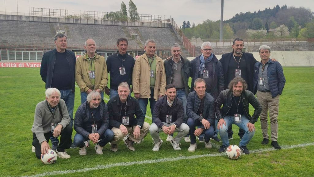 Sfilano le vecchie glorie ed ex sul prato di Masnago: Mario Beretta, Gabriele Bongiorni, Maurizio Brancaccio, Aldo Cunati, Antonio Criscimanni, Roberto Fumagalli, Mavillo Gheller, Paolo Misuri, Gianluca Porro, Carlo Prelli, Ulisse Raza, Paolo Tomasoni e Pietro Tripoli.