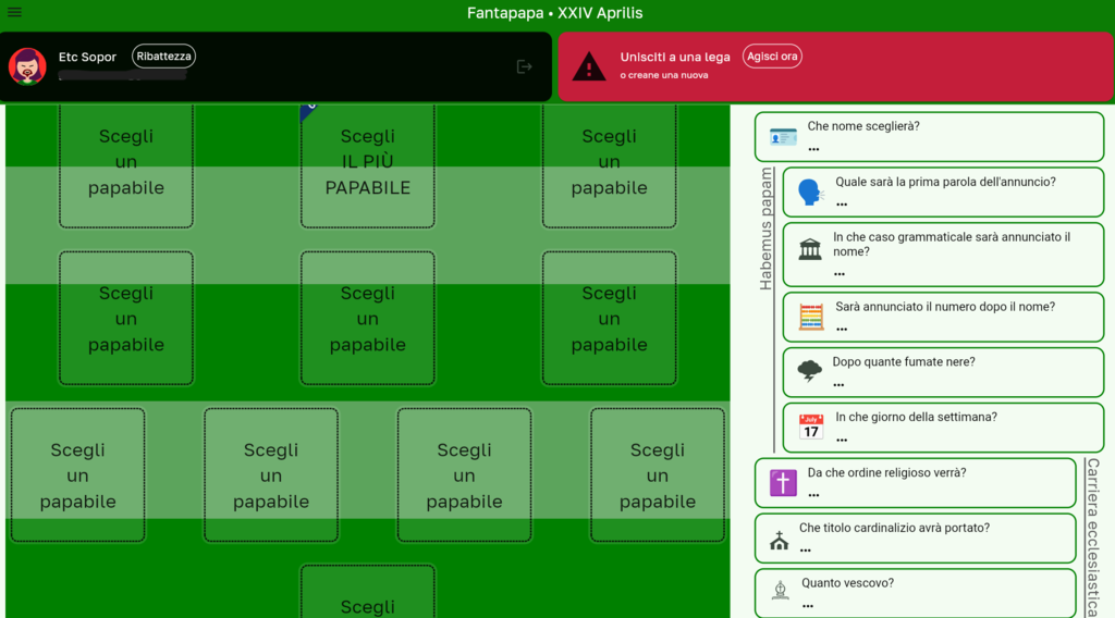 Immaginare il sacro e segreto conclave trasformato in un fantasy game online potrebbe sembrare audace, eppure è realtà. Si chiama "Fantapapa" ed è una piattaforma digitale che applica le logiche del fantacalcio e del fantasanremo all'imminente elezione del prossimo Pontefice.