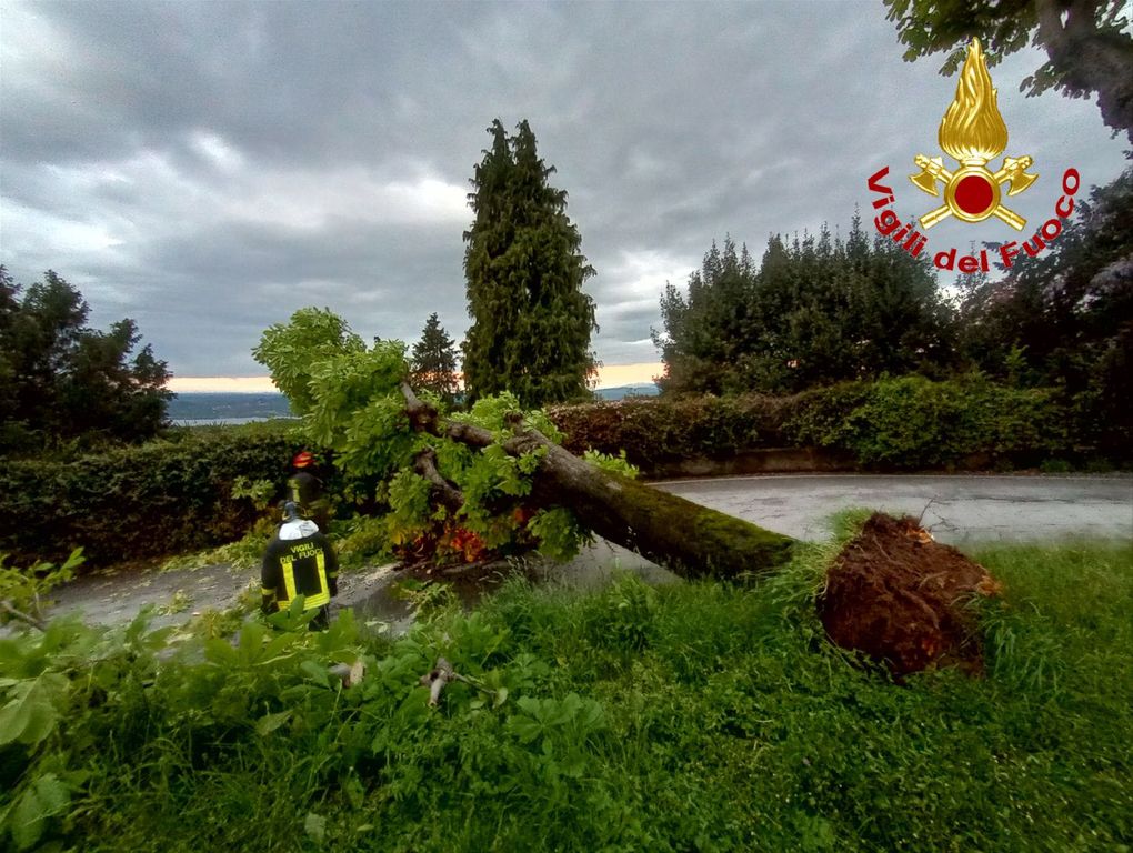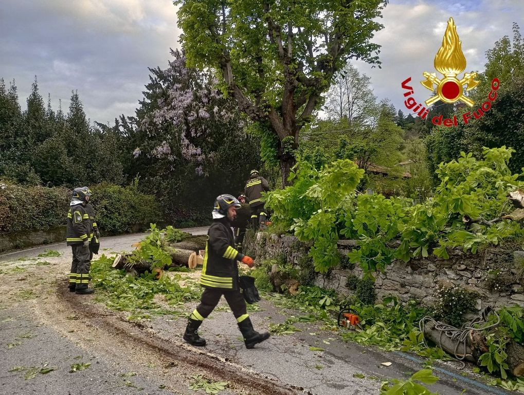 Le raffiche di vento abbattono un albero sulla strada per il Sacro Monte