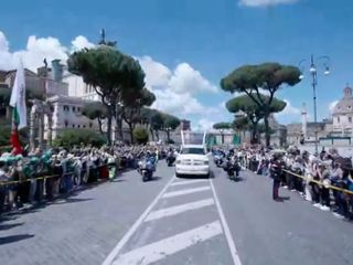 Smartphone in mano per immortalare, con foto e video, un momento storico, il corteo funebre per l'ultimo viaggio terreno di papa Francesco nella Basilica di S. Maria Maggiore. In migliaia assistono al passaggio del carro funebre, una ex papamobile che il Pontefice ha utilizzato in un viaggio in Oriente riadattata, da dietro le transenne allestite ai lati del percorso.
