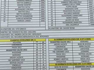 Eccellenza: avanti il Pavia (1-0, Poesio gol), sotto la Caronnese con l'Ispra (15' Dardha: 2-3). La Solbia raddoppia e poi triplica con Martinez e Silla: 3-0 al Mariano. Il Pavia sarebbe primo da solo a +1 sulla Solbia a una gara dalla fine