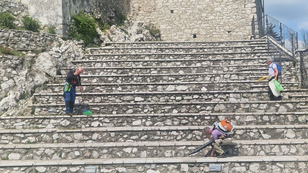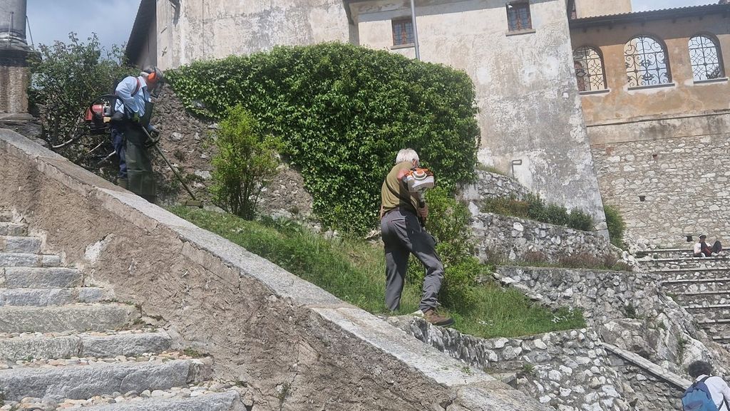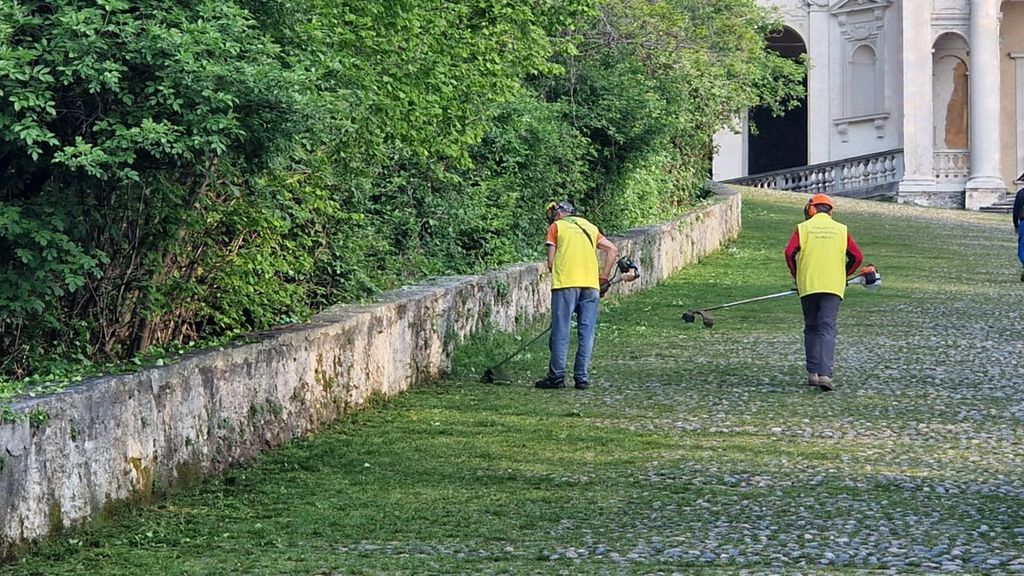 Volontari di cuore e fede. Volontari capaci di non restare a guardare ma di farsi avanti per il bene della loro terra. Volontari come quelli del Cai Senior che, come ormai da anni, oggi si sono messi all'opera sulla Via Sacra, facendo persino qualcosa di ancora più bello e utile rispetto al consueto. Oltre infatti a tagliare l'erba e fare manutenzione del verde lungo il Viale delle Cappelle sino a piazza San Paolo VI, la ventina di donne e uomini del Cai in azione oggi hanno sistemato anche la Grotta delle Beate posta tra la VI e la VII cappella nel giorno della solennità delle Beate Caterina e Giuliana.