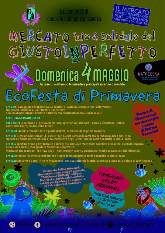 Domenica 4 maggio torna l'Ecofesta di Primavera a Castello Cabiaglio, evento associato al mensile Mercato del Giusto iNperfetto.