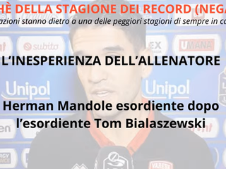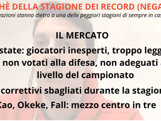 Sguardo più ampio a quella che è stata la stagione, cercando di capire quali siano stati i motivi di una stagione decisamente al di sotto delle aspettative (minuto 16:30): il caso Mannion, gli errori di mercato, la scelta dell’allenatore, la filosofia di gioco, le scelte strategiche e l’aver forse sottovalutato il campionato (immagini in fondo all’articolo).
