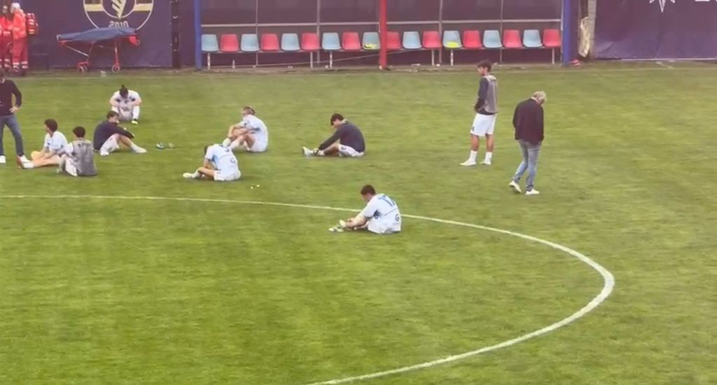 Poi, il fischio finale. Ma non è lì che tutto finisce. Sul volto dei giocatori del Magenta cala un velo di incredulità e disperazione. Dalle tribune arriva la notizia che nessuno avrebbe voluto sentire: a Ospitaletto, contro i padroni di casa già in serie C, il Crema ha segnato al 94’. Un gol che risuona come una condanna. Quel pareggio, arrivato in extremis, toglie al Magenta l’ultimo appiglio. Il campo di Venegono diventa improvvisamente muto, rotto solo dalle lacrime dei giocatori milanesi, crollati a terra, abbracciati tra loro, sconfitti dal destino più che dal risultato.
