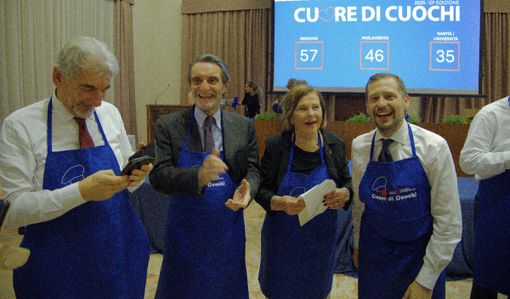 A fine serata infatti ogni tavolo ha espresso un voto per ciascuna portata. La vittoria è andata alla squadra Regione, composta dal governatore Attilio Fontana e dai consiglieri Emanuele Monti, Samuele Astuti e Raffaele Cattaneo, guidati dalla cuoca Elena Merella Paolucci, ideatrice del piatto “Il filo della memoria: i sapori del Campidano”.