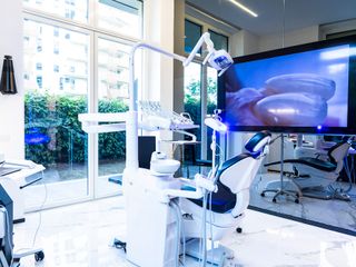 Inoltre, tutti i lavori di estetica e i progetti preoperatori effettuati nello studio vengono preceduti dalla creazione di un “digital twin” del paziente, grazie a uno scanner facciale ad altissima risoluzione che ricrea un modello 3D del viso tenendo conto della struttura ossea e muscolare del volto. Nei percorsi di odontoiatria estetica ciò consente di visualizzare il risultato finale ottenendo un livello di fedeltà al progetto altissimo.