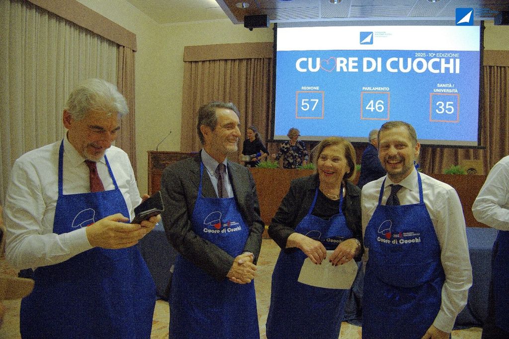 A fine serata infatti ogni tavolo ha espresso un voto per ciascuna portata. La vittoria è andata alla squadra Regione, composta dal governatore Attilio Fontana e dai consiglieri Emanuele Monti, Samuele Astuti e Raffaele Cattaneo, guidati dalla cuoca Elena Merella Paolucci, ideatrice del piatto “Il filo della memoria: i sapori del Campidano”.
