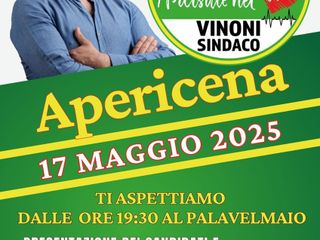 Sabato 17 maggio, dalle 19.30, il candidato sindaco Giacomo Vinoni sarà al PalaVelmaio di Arcisate per un evento speciale: un apericena gratuito con prodotti locali a km0, preparata con passione per valorizzare il nostro territorio.