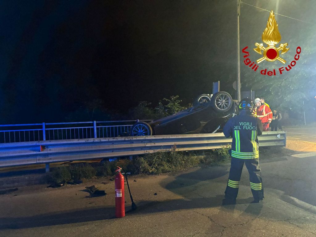 Auto si ribalta sul ponte sull'Olona: ragazzo di 23 anni finisce all'ospedale