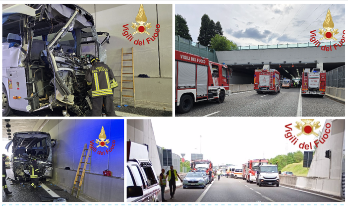 Tragedia nel pomeriggio di oggi nella galleria Lomazzo. A perdere la vita una donna di 43 anni, mentre è in gravi condizioni al Circolo di Varese il conducente del bus. I bambini, provenienti dalla sede di Cazzago dell'istituto comprensivo Da Vinci di Azzate, sono stati assistiti in codice verde e giallo nessuno di loro è in gravi condizioni. Sul posto numerosi mezzi di soccorso tra ambulanze e vigili del fuoco