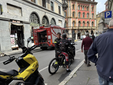 Piovono calcinacci sul marciapiede in via Magatti. Momenti di apprensione in pieno centro a Varese questa mattina, dove del materiale edile è improvvisamente caduto al suolo da un'altezza di circa tre piani da un palazzo di fronte all'uscita della Galleria Manzoni.