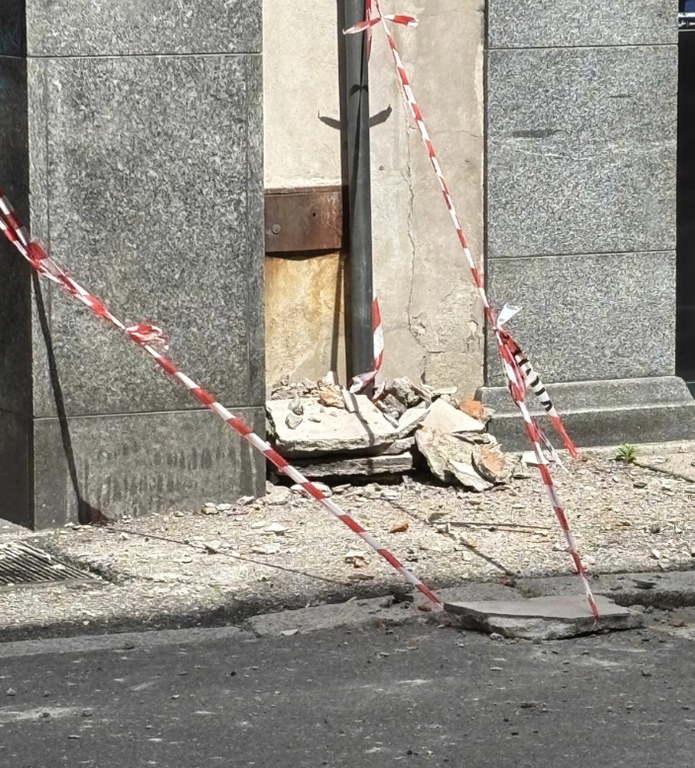Sul posto sono immediatamente intervenuti i vigili del fuoco con una squadra e la polizia: via Magatti è stata chiusa al traffico e il marciapiede interessato dal crollo transennato con il nastro per mettere in sicurezza l'area, mentre i sopralluoghi necessari a capire se sussistono ulteriori condizioni di pericolo sono ulteriormente in corso. Non risultano persone ferite.