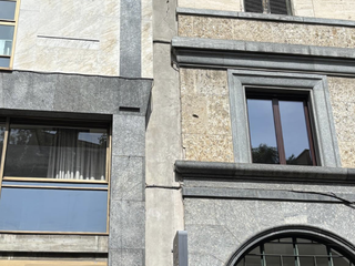 Piovono calcinacci sul marciapiede in via Magatti. Momenti di apprensione in pieno centro a Varese questa mattina, dove del materiale edile è improvvisamente caduto al suolo da un'altezza di circa tre piani da un palazzo di fronte all'uscita della Galleria Manzoni.