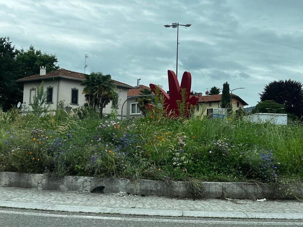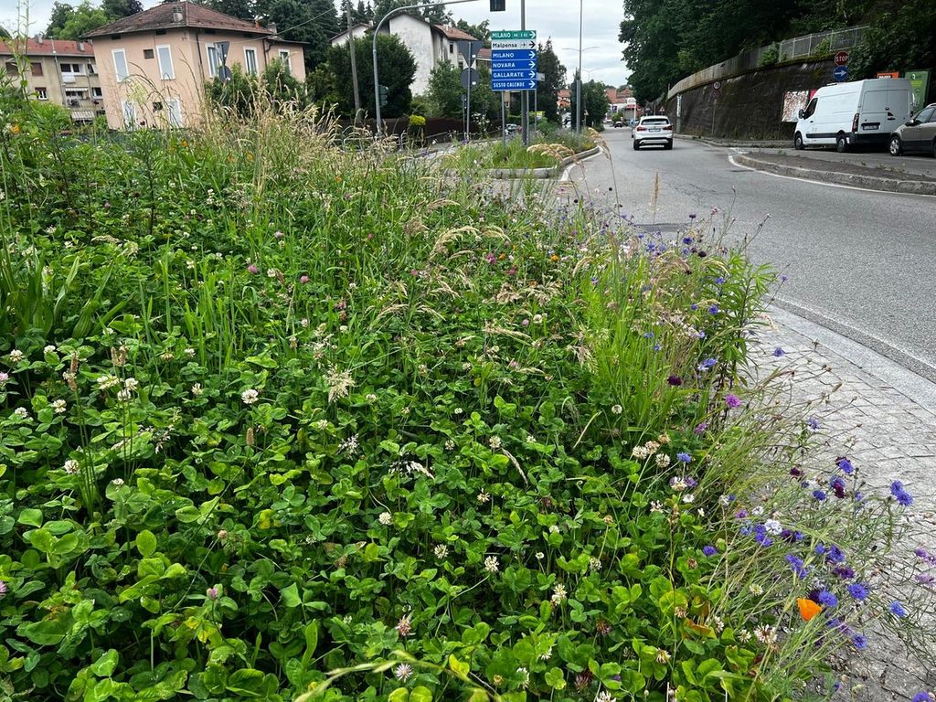 Come in un altopiano d'alta montagna, erba, fiori e vegetazione crescono selvaggi e senza freni tra le quattro corsie di uno dei viali di scorrimento veloci di Varese.