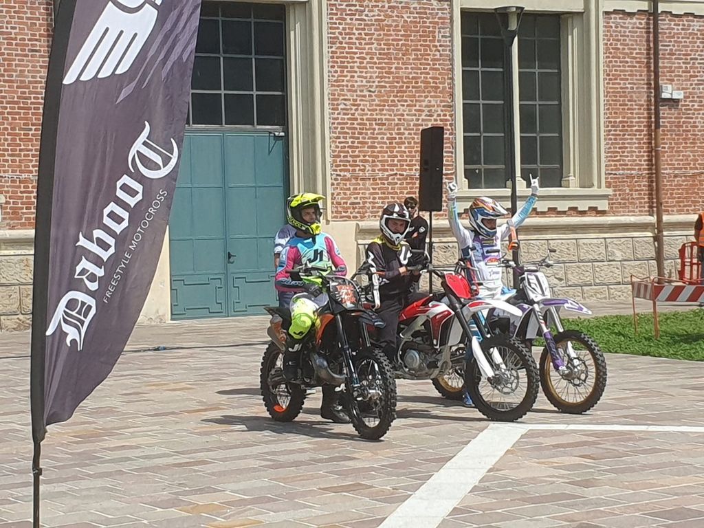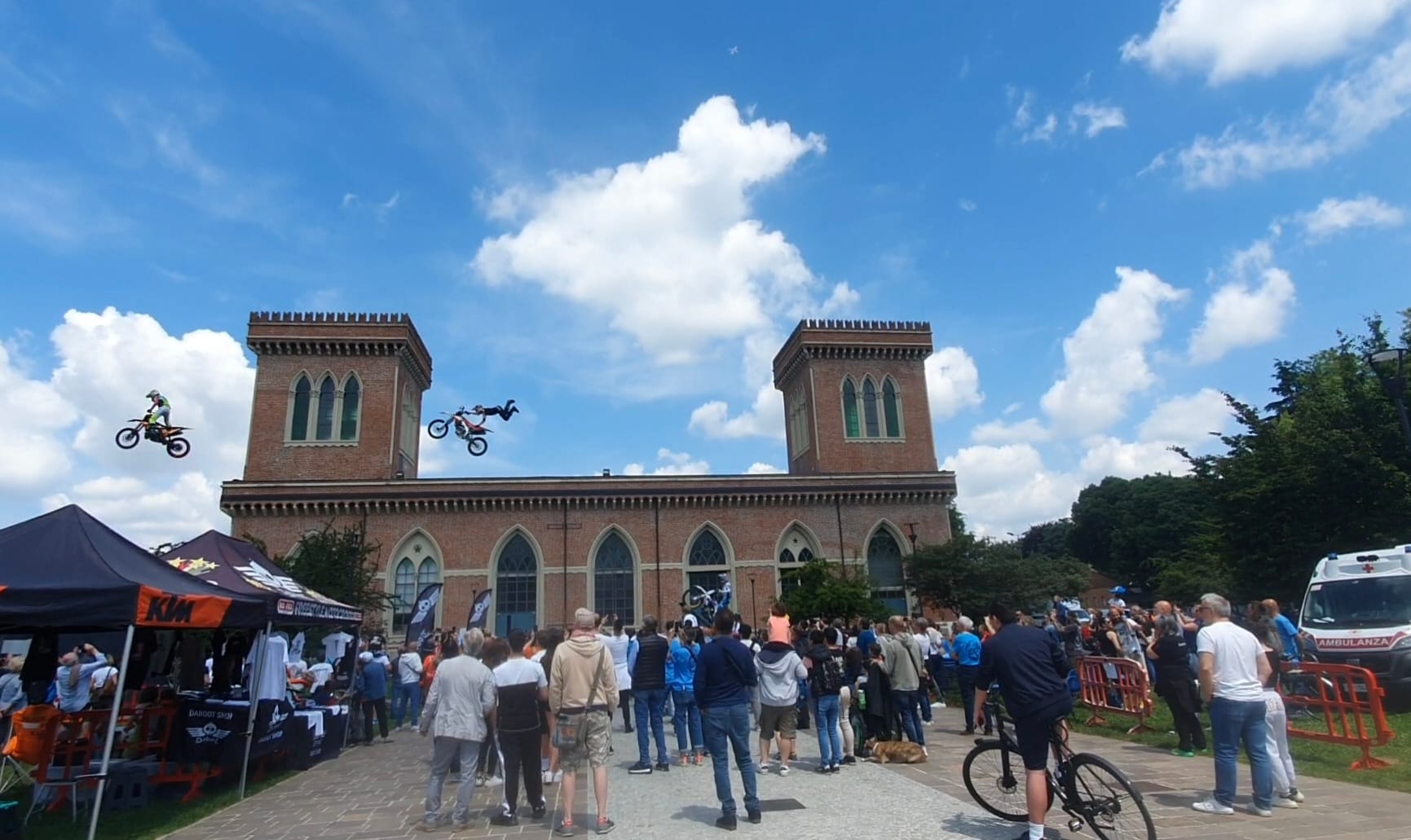 Rombano, anzi volano le moto, regalando immagini da cartolina con il Museo del Tessile a fare da sfondo. Mattinata spettacolare a Busto Arsizio grazie allo show di Vanni Oddera, campione del mondo di motocross freestyle, e del suo team, i Daboot.
