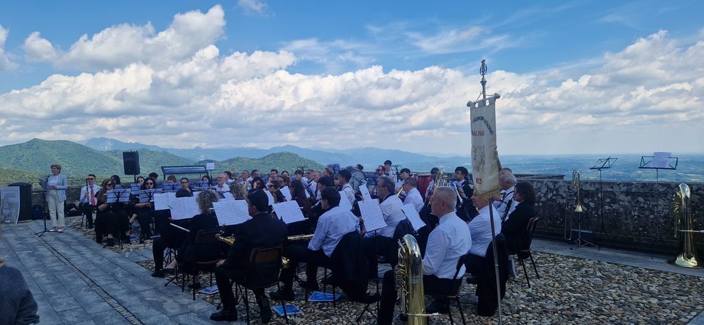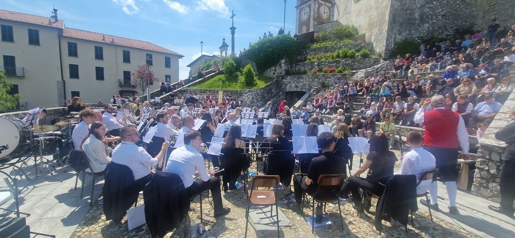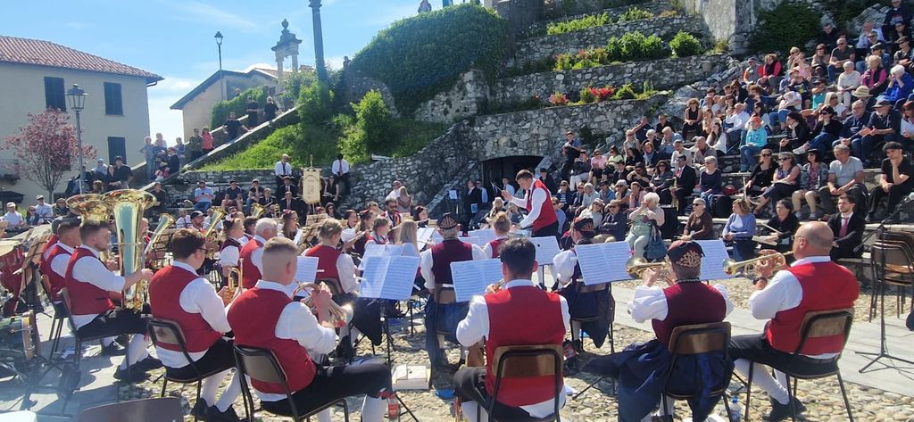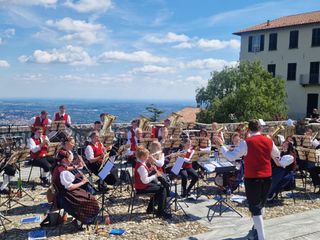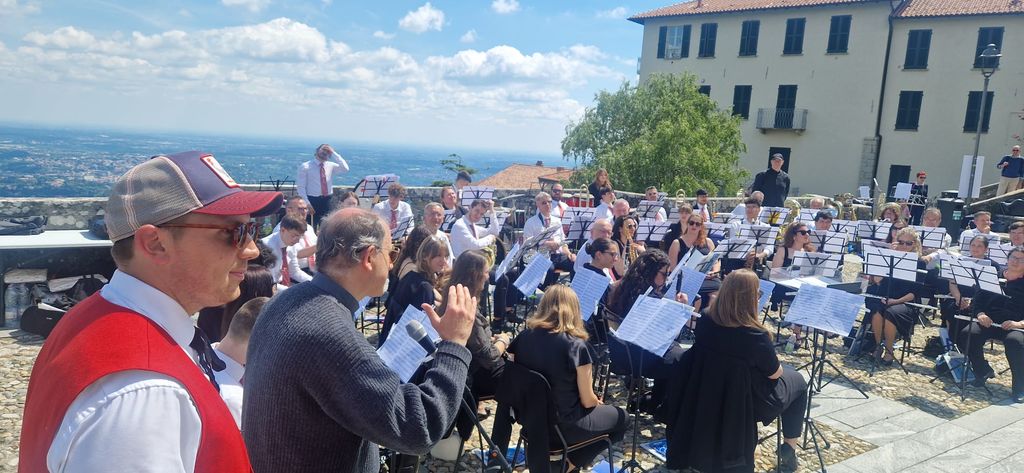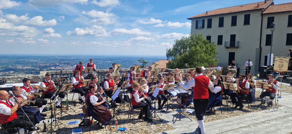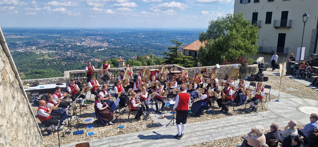 Un concerto di primavera nel luogo dove un filo sottile unisce la terra e il cielo nella cornice unica del Sacro Monte. È quello che si è tenuto nel pomeriggio di oggi, sabato 24 maggio, alla Terrazza del Mosè dove ogni cosa sembrava incastrarsi nel puzzle perfetto baciato dal sole: le note del Corpo filarmonico cittadino di Malnate diretto dal maestro Edoardo Piazzoli e la Trachtenkapelle Altenschwand della Baviera diretta da Andrea Bossi sembravano poter arrivare fino in città e in provincia ma anche oltre, laggiù e lassù in un panorama senza eguali. Monsignor Eros Monti, arciprete del Borgo, ha accolto le due storiche bande con parole bellissime: «Questo è un omaggio alla bellezza del luogo ed è un ponte tra emozione, tradizione, spiritualità e condivisione».