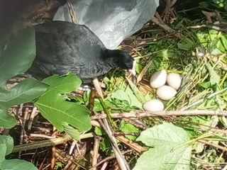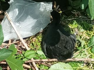 Probabilmente questo rifiuto, buttato da gente incivile o portato dalla corrente, è andato a incastrarsi nel rametto del nido. La povera folaga non è riuscita a buttarlo fuori dal nido, così come qualche passante desideroso di dare una mano al volatile. Fortunatamente, però, la cova sembra stia proseguendo senza impedimenti.