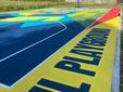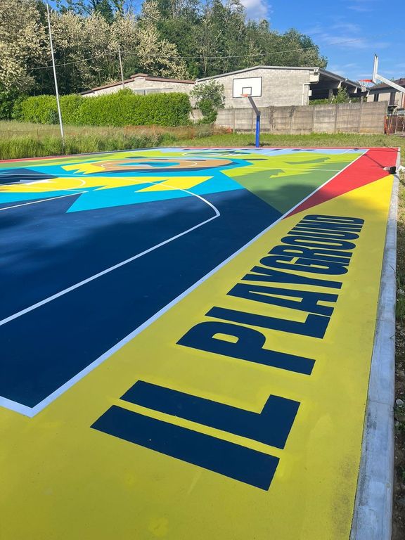 Un playground nuovissimo con una vera e propria opera d’arte immortalata sul terreno. Ma non solo: un’area verde che verrà presto arricchita con tavolini, fontanella, attrezzi per il fitness e recinzione.