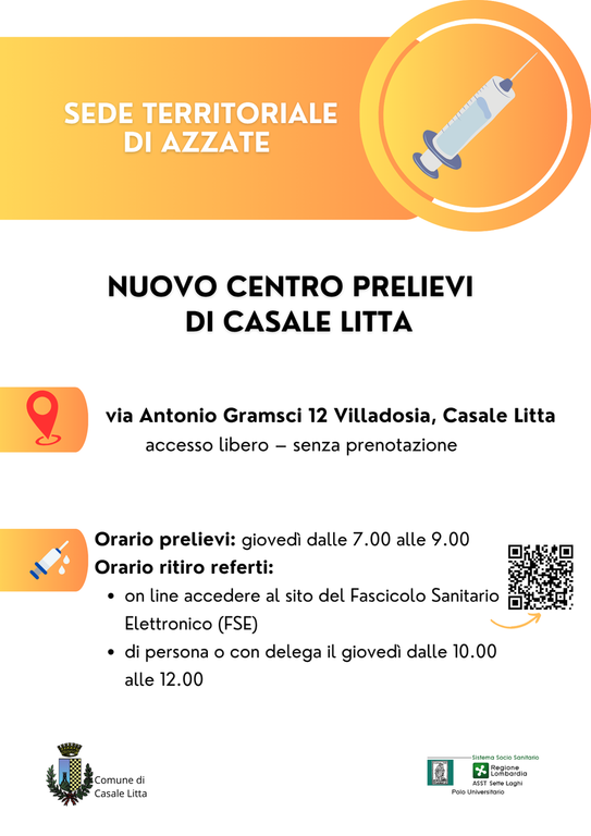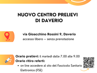 Il Punto Prelievi di Daverio, in via Gioacchino Rossini 9, sarà operativo da martedì 10 giugno, mentre quello di Casale Litta, in via Antonio Gramsci 12 (frazione Villadosia), aprirà giovedì 12 giugno.
