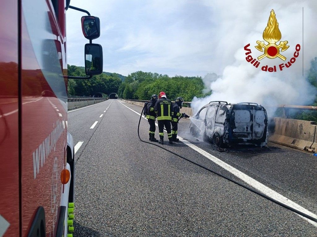 Paura sull'autostrada A26, furgone avvolto dalle fiamme