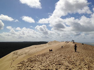 Ad Arcachon, affacciata sull'Atlantico, dove ci siamo fermati per gustare ostriche freschissime direttamente dai produttori locali. Da lì abbiamo raggiunto la Dune du Pilat, la collina sabbiosa più alta d'Europa. Salirla a piedi nudi è stato impegnativo ma appagante: sabbia fine sotto i piedi, il vento tra i capelli e un panorama che toglieva il fiato. Dall'alto si apre un paesaggio sorprendente, fatto di contrasti: alle spalle, il bosco di pini marittimi; di fronte, l'oceano dai colori quasi tropicali. Una meraviglia inattesa, che da sola vale il viaggio.