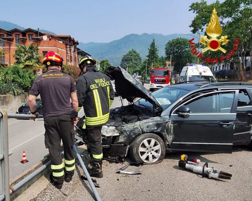 FOTO. Auto esce di strada e si schianta contro il guard rail: un ferito a Gemonio