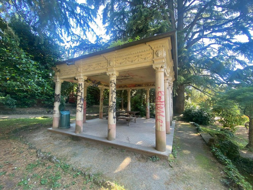 I particolari potrebbe essere curati decisamente meglio. I cartelli informativi presenti alle entrate di via Nino Bixio sono completamente anneriti: per leggersi si leggono, ma non sono un bel vedere. All’interno del parco ci sono due pannelli esplicativi del patrimonio arboreo, ma uno dei due - quello sulla sughera - è staccato dal supporto e giace per terra. Manca una mappa del parco. Continuiamo con le mancanze: mancano i servizi igienici (sono presenti solo all’interno della Villa, che però è aperta al pubblico solo tre mattine a settimana) e manca anche un chiosco per rifocillarsi, anche se non sono pochi i bar in zona e ci si può affidare a quelli. C’è invece una fontanella, funzionante, proprio sotto la Villa. Ben due gli spazi dedicati ai giochi per i bambini, uno più modesto sul lato di via Bixio, l’altro più grande e fornito su quello di via Cadore. All’ombra degli alberi, in una location suggestiva e privilegiata, ecco un campetto da basket: peccato che le retine siano completamente sdrucite. Diverse le panchine presenti, quasi tutte all’ombra. Vicino ai cedri, ecco un bel gazebo in stile neoclassico con sotto un comodo tavolino, completamente deturpato dai graffiti. VOTO 6,5.