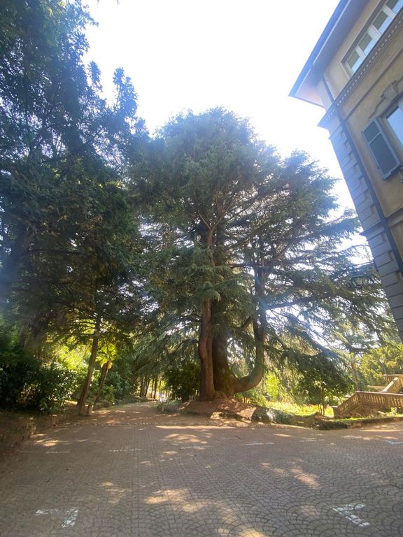 Il vero punto forte del parco di Villa Augusta. Maestoso, imponente variegato, colorato: sono solo tre degli aggettivi che ci vengono in mente per descrivere il giardino. A farla da padrone i due cedri monumentali d’Atlante, cui non è seconda una quercia da sughero (sughera) vicino all’ingresso di via Lazio, anch’essa monumentale. E poi faggi, conifere, filari di tigli e di platani, fiori di diverse specie. Il complesso, oltre che una gioia per gli occhi, costituisce uno splendido ombreggiato riparo dalla calura estiva. L’erba è generalmente ben tagliata. VOTO 9.