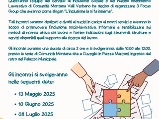 L’équipe del Servizio di Inclusione Sociale e del Nucleo Inserimento Lavorativo della Comunità Montana Valli del Verbano ha avviato un percorso partecipativo dedicato alle persone attualmente in carico ai due servizi, con l’obiettivo di promuovere l’inclusione socio-lavorativa.