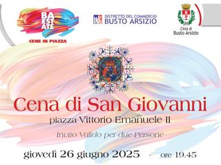 Giovedì 26 giugno, in occasione della festa patronale, torna la “Cena di San Giovanni” in piazza Vittorio Emanuele II. Dopo la cena a cura di Crespi Catering, spazio a un concerto. I dettagli verranno rivelati lunedì durante la conferenza stampa di presentazione degli eventi della patronale.