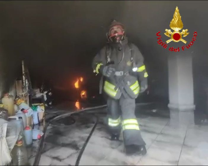 FOTO. Incendio in un garage di Viggiù: in fiamme sette auto d'epoca