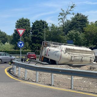 FOTO. Autocisterna si ribalta sulla superstrada Vergiate-Besozzo