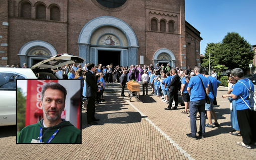 Un applauso lungo, commosso e interminabile ha riempito la chiesa parrocchiale di Sacconago e il sagrato gremito. Un ultimo, corale abbraccio a Luca Rusconi, il 54enne motociclista tragicamente scomparso in un incidente stradale, il cui funerale è stato celebrato oggi, giovedì 19 giugno. Per quasi due ore in tanti hanno partecipato, con la mente e con il cuore, all'ultimo saluto all'ingegnere buono che ha perso la vita la scorsa settimana in un incidente stradale a Solbiate Olona e un infinito abbraccio alla moglie Cristina e ai figli Andrea, Elisa e Gabriele.