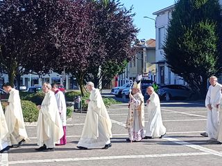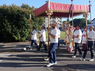 Al termine della celebrazione, la processione del Corpus Domini si è snodata lungo le vie del rione per ritornare poi sul sagrato della chiesa per la benedizione eucaristica.