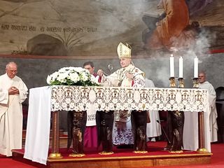 La chiesa era gremita per la messa solenne delle 17.30: tra le navate erano seduti, oltre ai tanti fedeli, i consacrati, le autorità civili e militari, i rappresentanti dell’amministrazione comunale, guidati dal sindaco Gianni Montano, quelli delle associazioni olgiatesi e numerosissimi bambini.