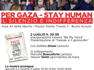 Numerose le adesioni all’iniziativa, tra cui quelle di ACLI Busto Arsizio, AUSER Busto Arsizio, FIVL Raggruppamento “Alfredo Di Dio”, Legambiente BustoVerde, Movimento per Busto e Quindi - home and humanity. L’obiettivo è chiaro: aprire uno spazio di confronto e consapevolezza, contro la reticenza informativa e a favore di una cultura di pace e giustizia. «Due popoli, due stati o uno stato per tutti con eguali diritti: questo chiediamo con la forza dei miti, con la forza dei giusti, in virtù dell’articolo 11 della nostra Costituzione “L'Italia ripudia la guerra come strumento di offesa alla libertà degli altri popoli e come mezzo di risoluzione delle controversie internazionali; consente, in condizioni di parità con gli altri Stati, alle limitazioni di sovranità necessarie ad un ordinamento che assicuri la pace e la giustizia fra le Nazioni; promuove e favorisce le organizzazioni internazionali rivolte a tale scopo”».
