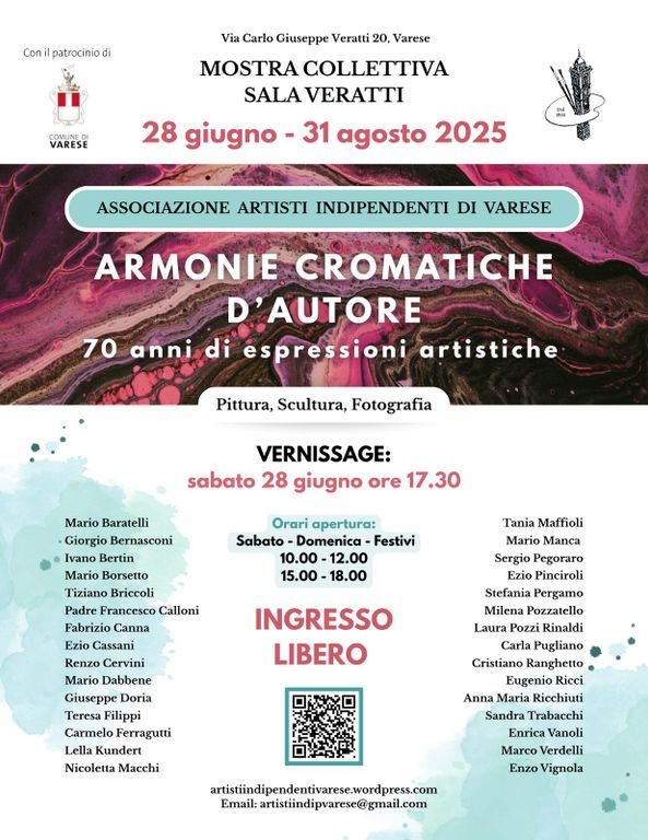 L’evento si terrà dal 28 giugno 2025 al 31 agosto 2025 presso la splendida Sala Veratti di Varese, gioiello d’arte Varesino dove le opere della nostra mostra saranno accolte in un ambiente ricco di affreschi di pregio e di storia.