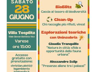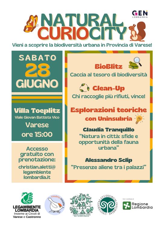 Un incontro tra teoria e pratica per riscoprire la biodiversità urbana in provincia di Varese. Chi l’ha detto che città e natura non possano convivere? Sabato 28 giugno dalle ore 15 lo splendido parco di Villa Toepliz a Varese ospiterà “Natural Curiocity - La biodiversità in città”, un evento aperto a tutti per riflettere, imparare e agire insieme per la tutela della biodiversità urbana.
